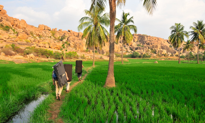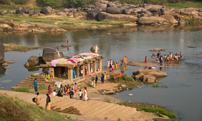 | Hampi the 14th century capital city of the Vijayanagar Empire lies in the Deccan heartland, in the state of Karnataka. The ruins spread over an area of more than 26 sq. kms protected by the tempestuous river Thungabhadra in the North and by rocky granite on the other three sides. A terrain such as this was excellent for a capital city that needed to be vigilant. It may not have been military shrewdness alone that made the god-conscious Vijayanagar kings settle for this fierce landscape and build on it one of the great imperial cities of medieval times. It was believed to have been the site of the monkey kingdom of Kishkindha associated with the Hindu epic, the Ramayana. The presence of a large number of monkeys seems to testify to that. HAMPI, the abode of Lord Virupaksha and his consort Pampadevi, has a hoary past. Traditions and local legends speak of the penance of Shiva on the Hemakuta hill and his subsequent marriage with Parvathi. The ancient Kishkindha of the Ramayana was situated close to present day Hampi. This is the site of the fight between Vali and Sugriva, killing of Vali by Lord Rama, and the subsequent stay of Rama in Malyavantha Hill when Hanuman went in search of Sita to Lanka. Thus, many of the sites: Matunga, Malyavantha, Rishyamukha, Anjanadri Hills and Pampa Sarovar and Sita Serugu are all associated with RAMAYANA. Hampi or Hampe is generally held to be a later Kannada form of the term Pampa, the ancient name of the river Tungabhadra. The site is naturally endowed with great strategic importance. The wide, torrential Tungabhadra on one hand and the rugged hillocks on the other made it a natural fortress. These factors no doubt induced the Vijayanagara rulers to choose this site. What was once only a pilgrim center of the devout became the seat of a mighty empire. |